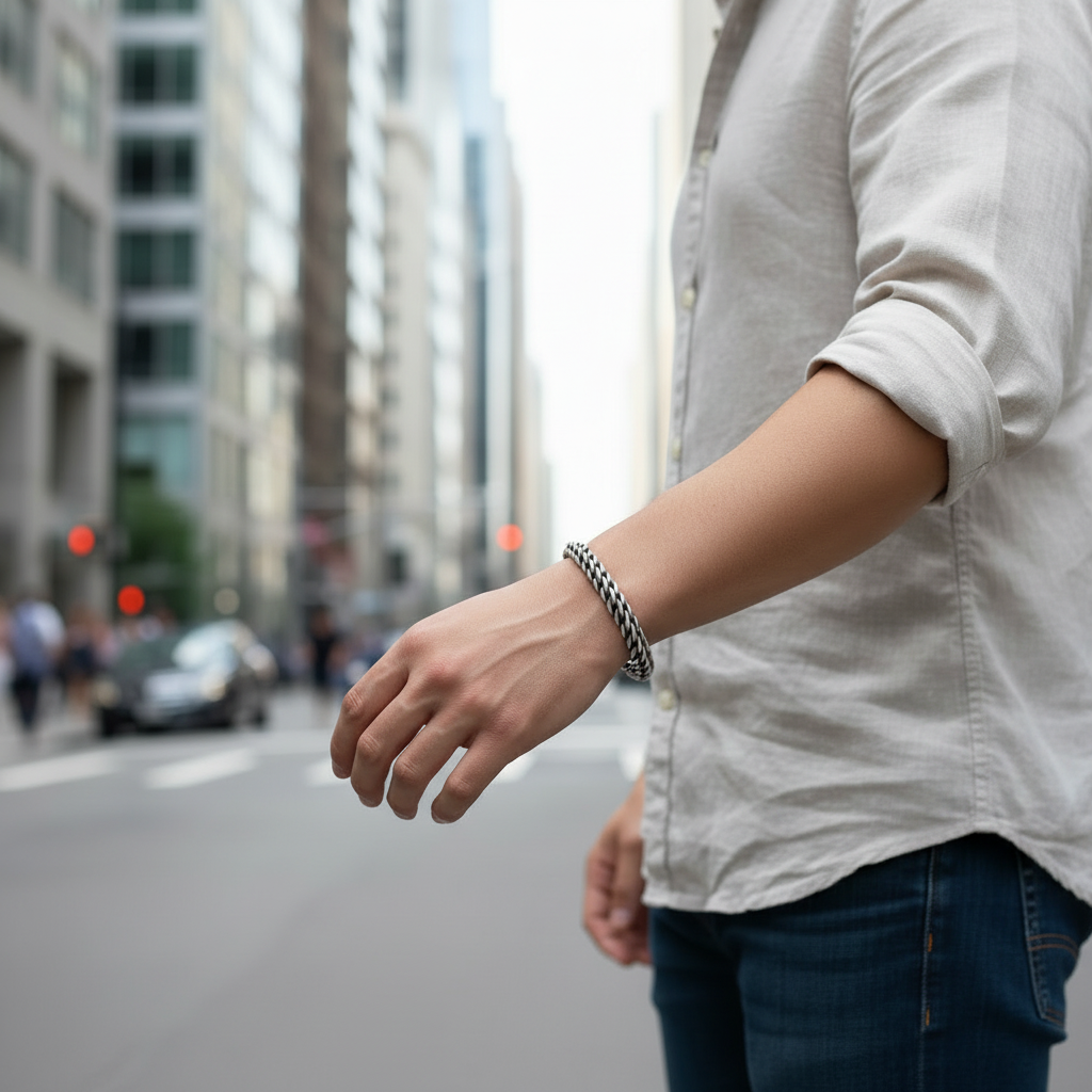 Crafted from solid sterling silver, this double-tier cuff bracelet features an elegant snake motif, measuring 1/4" wide with gracefully tapered, pointed ends.