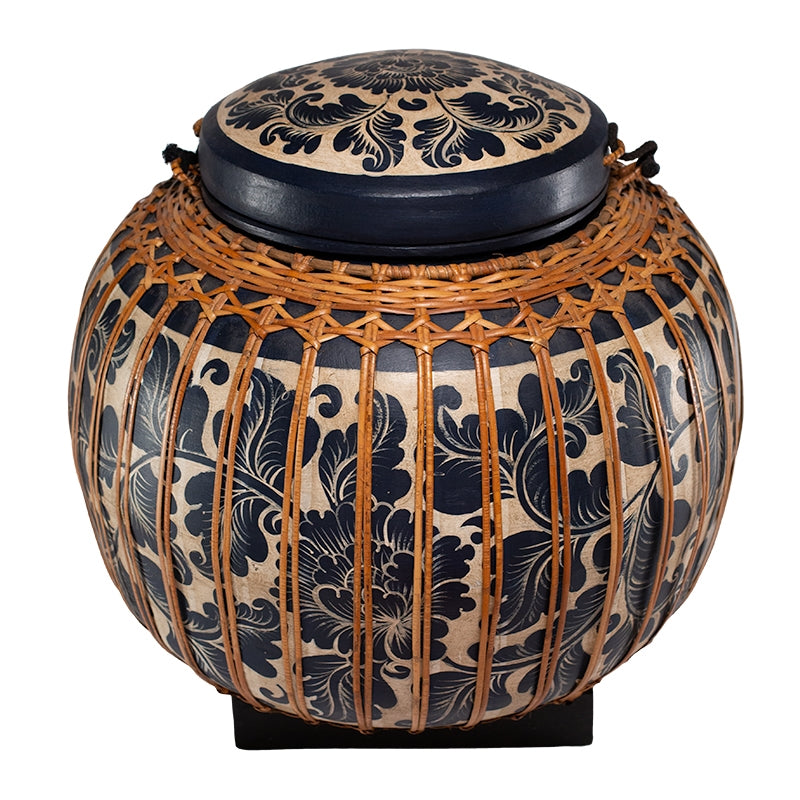 Hand crafted & hand painted storage container, made from Bamboo material,